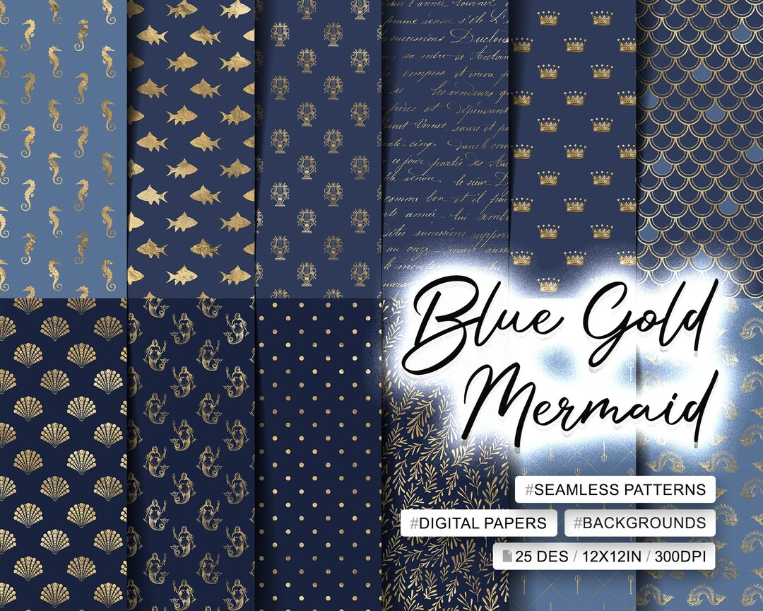 25 Blue Gold Mermaid Seamless Pattern Glitter Patterns Etsy Australia